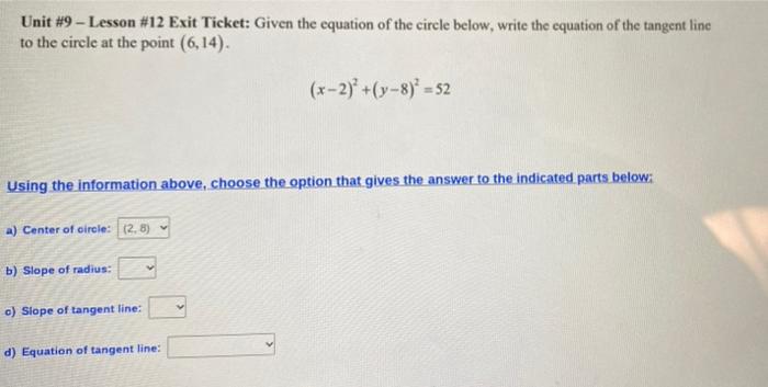 Unit 10 Homework 10 Equations Of Circles Questions 11-12 : HS, Algebra 2 Do I need to memorize the unit circle ... - She had a pen, but she didn't have any paper.